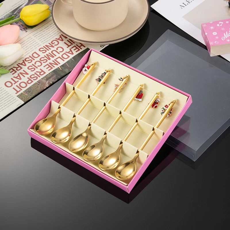4pcs New Year 2024 Stainless Steel Spoons Fork Xmas Party Coffee