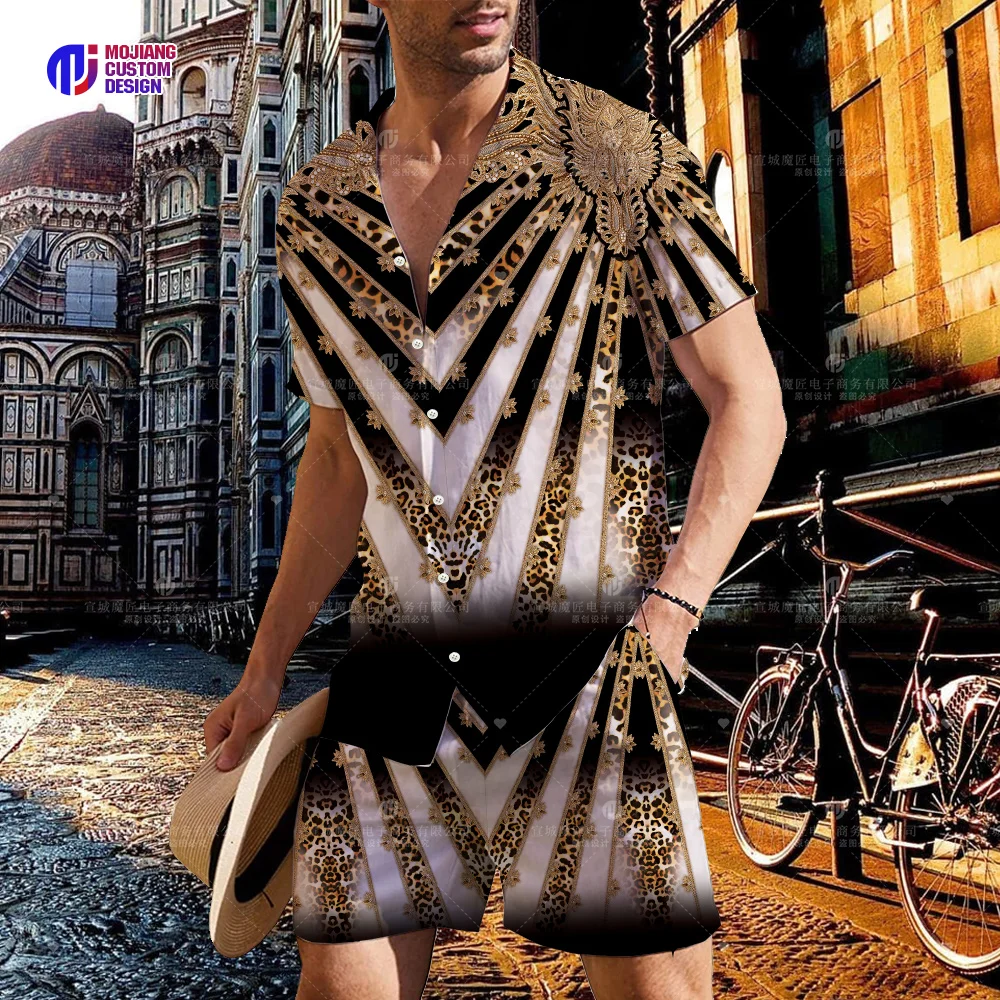 2024 Luxury Men’s Shirt Casual Brand Big Gold Chain Suit 3D Color